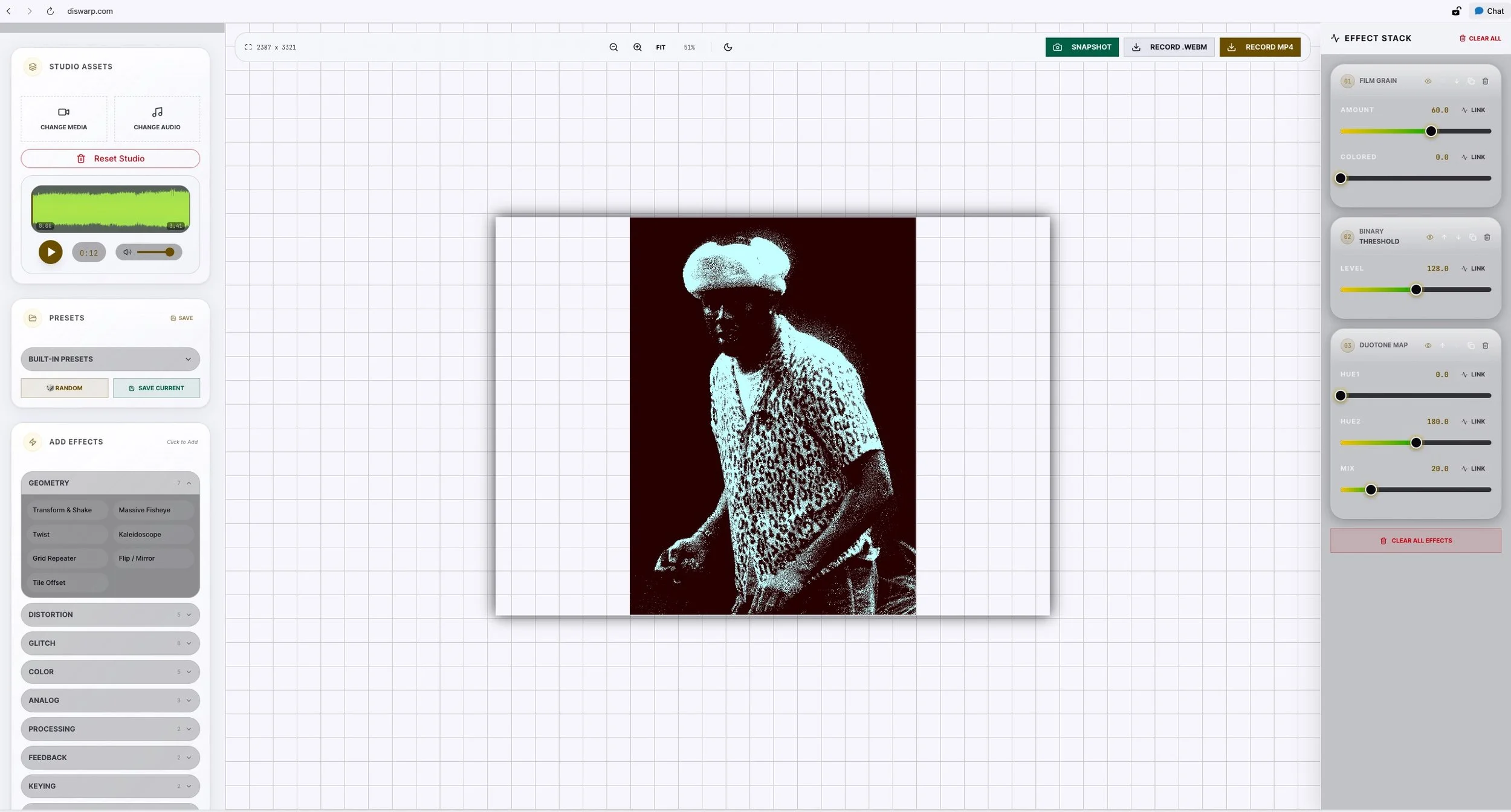 Your music deserves to be heard. But on social, it has to be seen first. DISWARP turns your tracks into dynamic, audio-reactive visuals directly in your browser. No heavy software. No timeline headaches. No learning curve. Just drag, drop, and export content that demands attention.